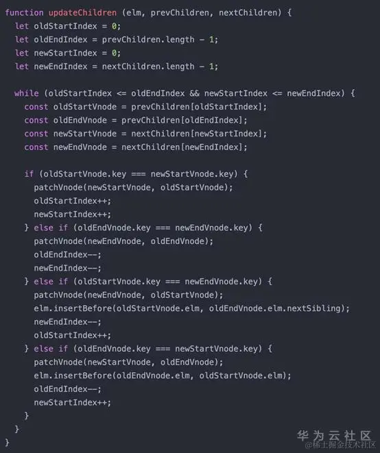 while (oldStartIndex <= oldEndIndex && newStartIndex <= newEndIndex) {