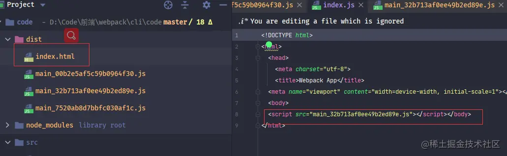 :whale2: output 属性中的 [contenthash] ,是 webpack 提供的一种打包缓存的机制。 webpack 会为打包编译生成一个 hash 值。只有更改源文件后才会重新打包编译,生成新的 hash 。 缓存机制一般只会在 生产模式(production) 使用。