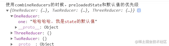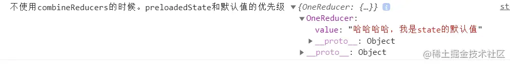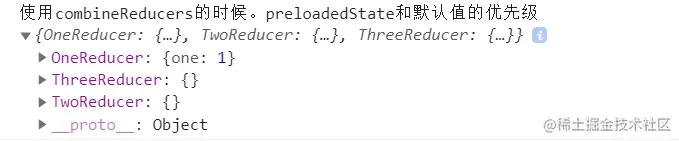 console.log( "使用combineReducers的时候。preloadedState和默认值的优先级", store.getState())