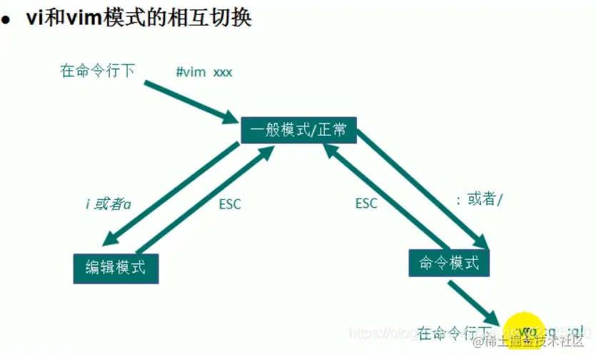 编辑模式下按ESC到一般模式,想进去命令模式,得英文状态下按住shift再按;键。才能打命令行