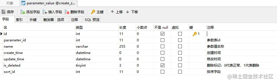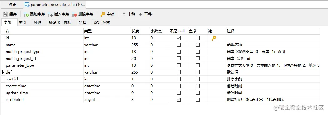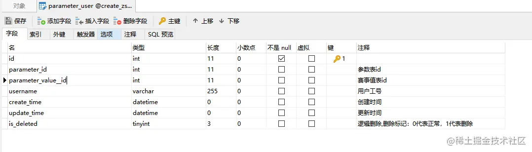 用于删除标记,确定是否正常使用。注意类型tinyint与长度3,和不是null。并给个默认值0,默认正常使用。