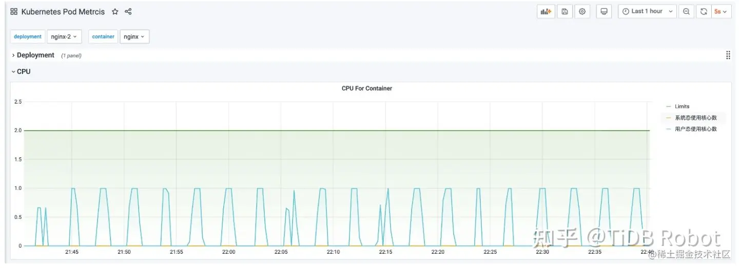 要解决的另外一个问题是如何判断 Chaos 实验是否生效。以负载实验为例,在注入了 StressChaos 之后,需要进入到实验选取的 Pod 中,查看是否有 stress-ng 的进程,再使用 top 等系统命令查看 CPU 和内存消耗,这样才能确定 Chaos 实验注入成功了。