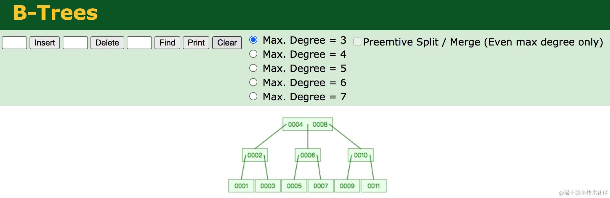B树 www.cs.usfca.edu/~galles/vis…