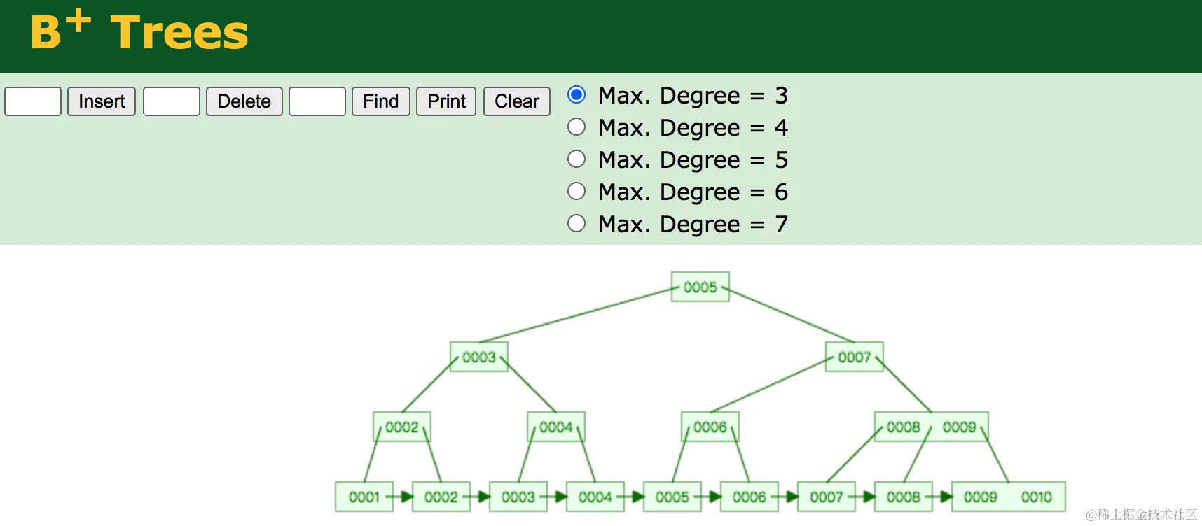 B+树 www.cs.usfca.edu/~galles/vis…