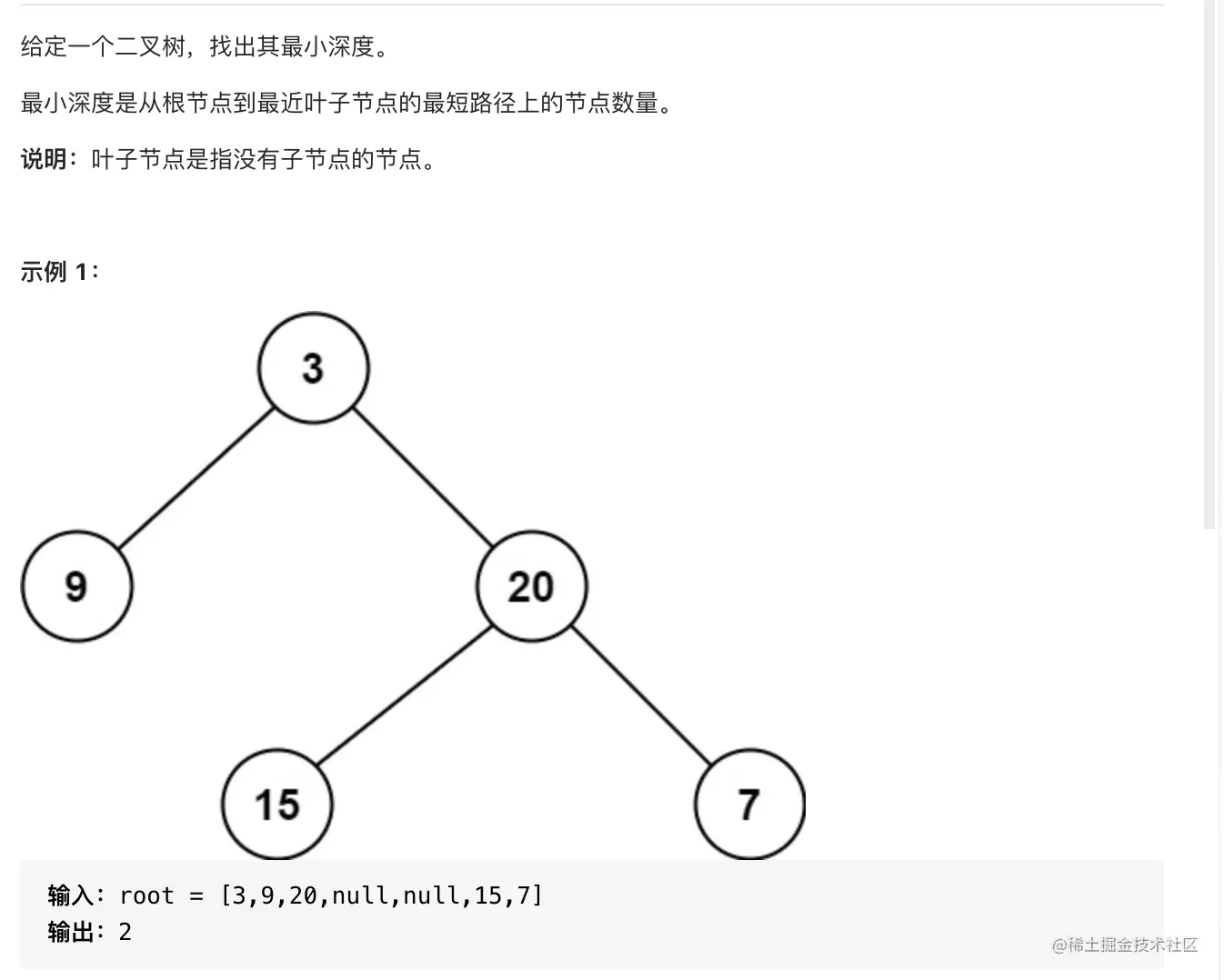 public int minDepth(TreeNode root) {