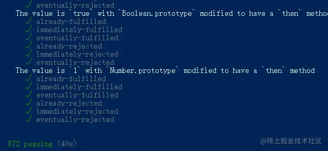 "test": "promises-aplus-tests promise.js跑完测试需要一点时间,此工具用例没有测试到resolve()中传入promsie的情况,我在童欧巴大佬的1.手写 Promise 全家桶讨论过这个issue,大佬的文章质量都很高,大家可以follow学习。 传送: 大佬github