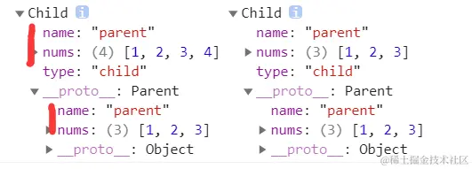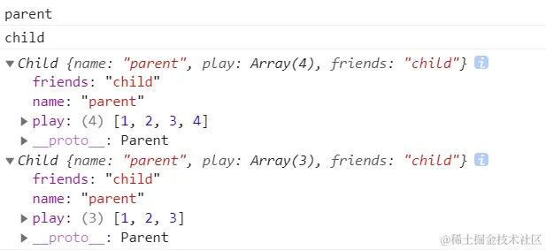 缺点:虽然组合继承解决了前两个问题,但是 Parent 执行了两次,第一次是通过 call 方法,第二次改变 Child 是 prototype 的时候,而多执行一次就多了一次新能的开销