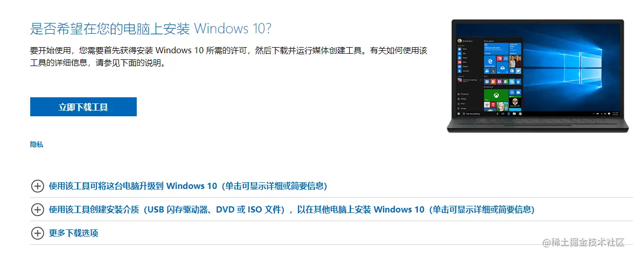 - 下载微软官方工具,这里是链接:www.microsoft.com/zh-cn/softw…