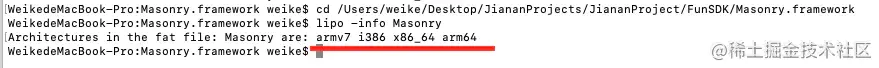 例:lipo -thin armv7 Masonry -output Masonry-armv7