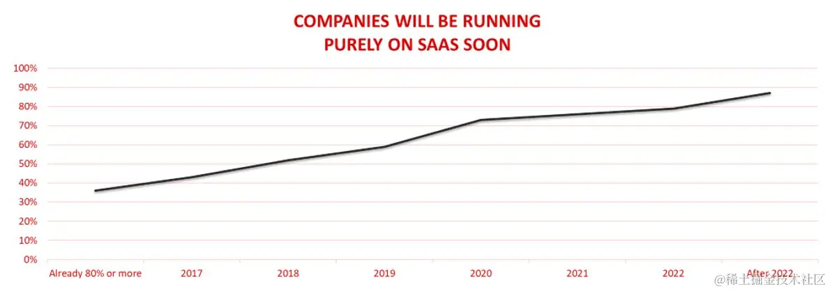 领先的欧洲B2B CRM解决方案提供商Super Office的一份报告显示,过去3年中使用SaaS的公司增长了约30%,而来年这一数字还将进一步增长,其中73%的组织几乎完全是独立运营在SaaS上。
