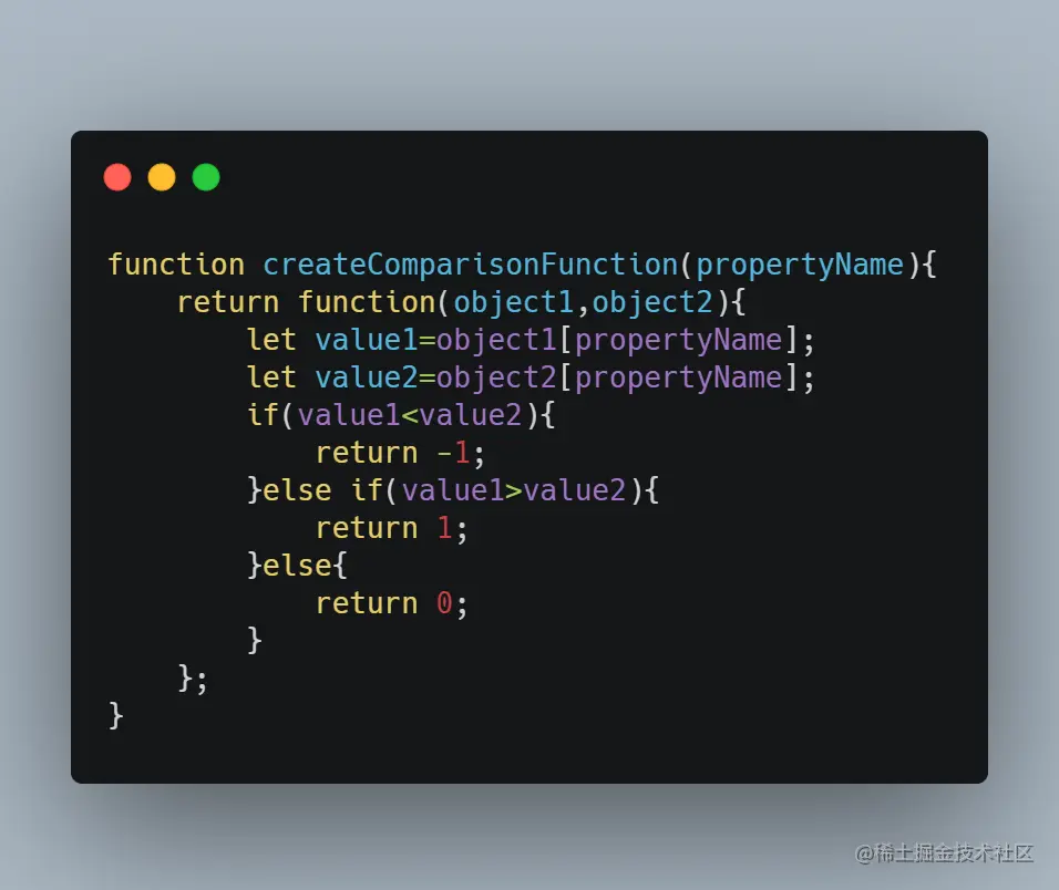 这里的变量value1与value2的值引用了外部函数的变量propertyName。在这个内部函数被返回并在其他地方使用后,它仍然引用着那个变量。这是因为内部函数的作用域链包含createComparisonFunction()函数的作用域。