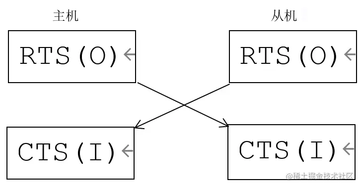 主机的RTS(输出信号),连接到从机的CTS(输入信号)。 主机是CTS(输入信号),连接到从机的RTS(输入信号)。