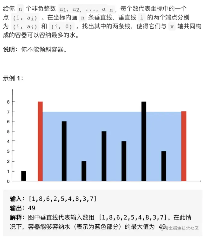 * 求每一次的面积:min(height1, height2) * (index2 - index1);