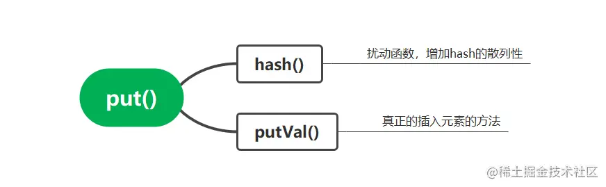 put()方法其实只有对两个方法的调用,hash()和putVal()