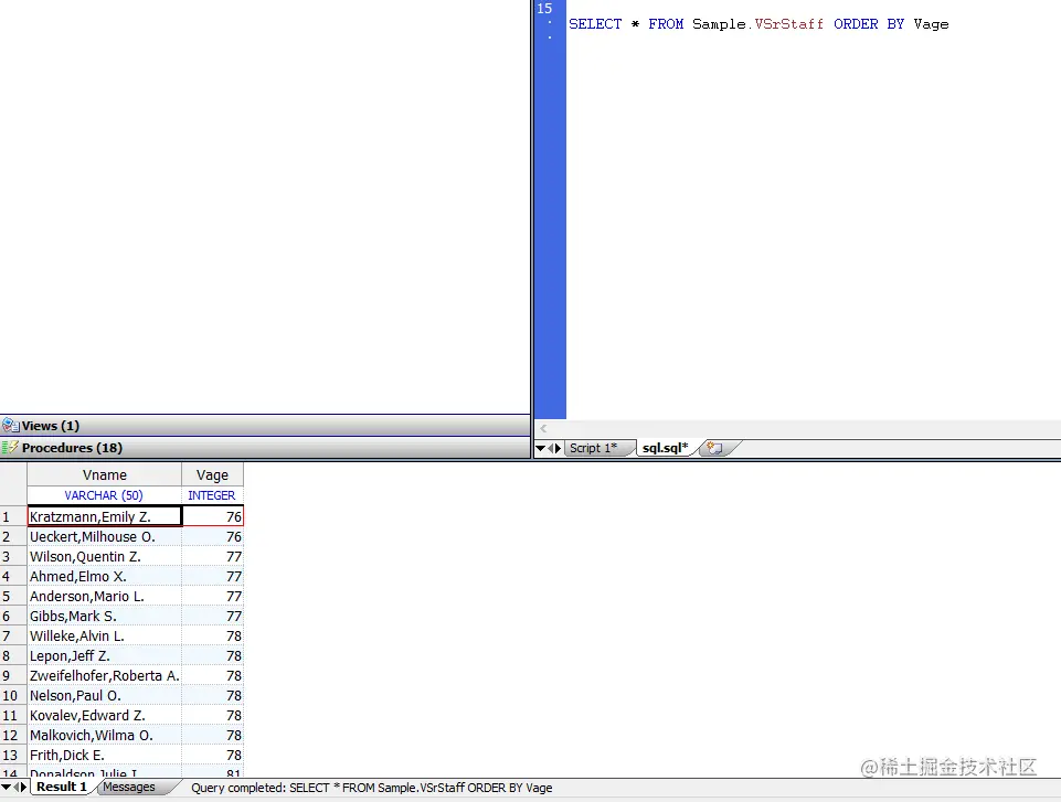 视图可用于创建表的受限子集。以下嵌入式SQL示例创建一个视图,该视图限制了可以通过该视图访问的原始表的行(通过WHERE子句)和列(假设Sample.Person包含两个以上的列):