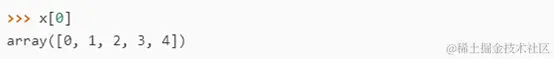 也就是说,指定的每个索引都会选择与所选维度的其余部分相对应的数组。在上面的示例中,选择0表示长度5的剩余维未指定,返回的是该维和大小的数组。必须注意,返回的数组不是原始数组的副本,而是指向内存中与原始数组相同的值。在这种情况下,将返回第一个位置(0)的一维数组。因此,在返回的数组上使用单个索引会导致返回单个元素。例如: