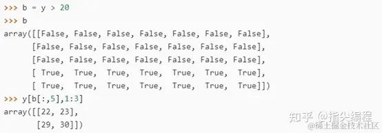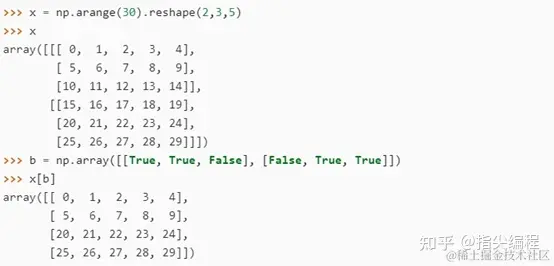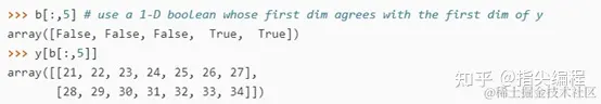 通常,当布尔数组的维数少于要建立索引的数组的维数时,这等效于y[b,…],这意味着y由b索引,后跟任意多个“:”来填充y的等级。因此结果的形状是一维,其中包含布尔数组的True元素的数量,其后是要索引的数组的其余维。