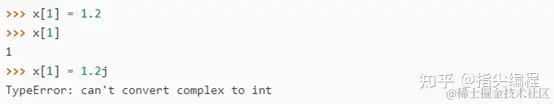如果将较高的类型分配给较低的类型(例如将浮点数分配给整数),或者甚至将异常(将复杂的值分配给浮点数或整数),分配都可能导致更改: