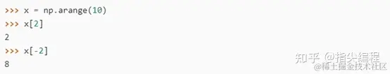 一维数组的单元素索引是我们所期望的,它的工作方式与其他标准Python序列完全相同。它基于0,并且接受复索引以数组末尾开始索引。