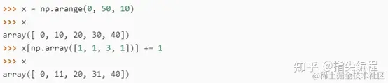 与某些引用(例如数组和掩码索引)不同,赋值总是对数组中的原始数据进行分配(实际上没有其他意义!)。但是,某些操作可能无法像预期的那样起作用。例如: