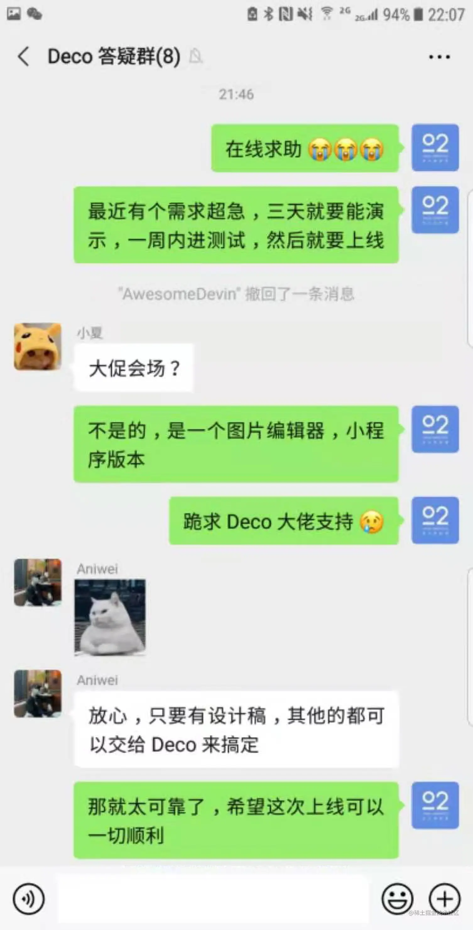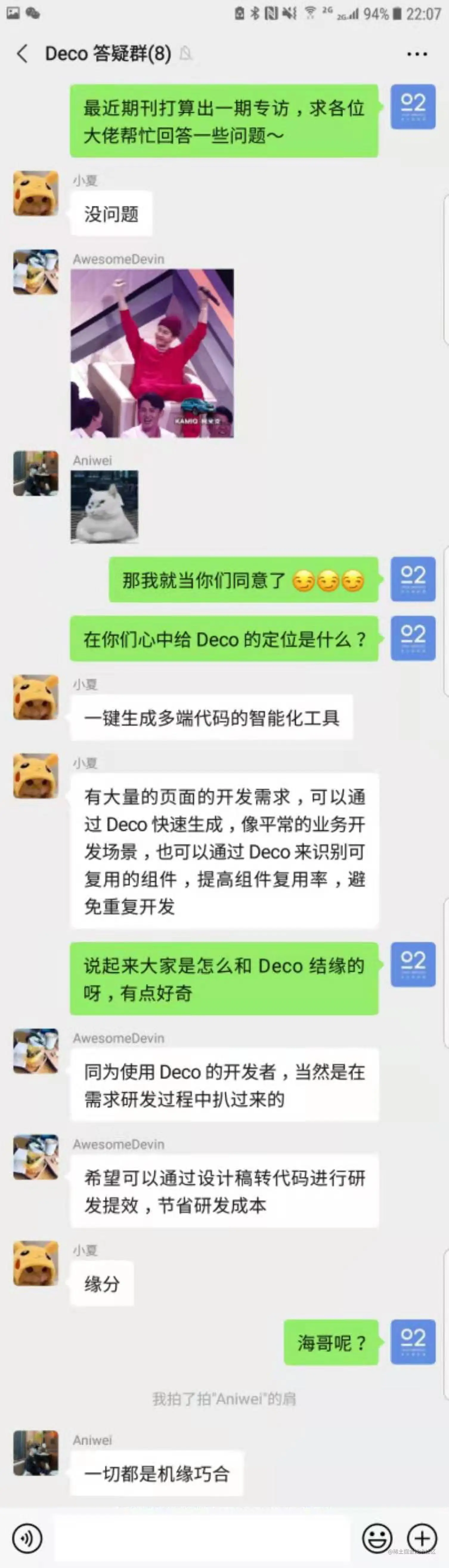 小助手最近在观察凹凸实验室的在研项目中,发现了一个特殊的存在,那就是 Deco,相信很多小伙伴们都在去年底的周年系列中窥见端倪,那么 Deco 到底发展到什么地步?它真的可以帮助研发流程加速么?未来它又会走向何方?或许小助手之前做项目时找大佬们调研的聊天记录能够解开大家的一些疑惑。