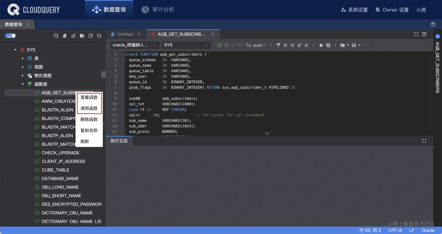 - Oracle - 支持创建、查看、调用函数和存储过程,支持执行 PL/SQL