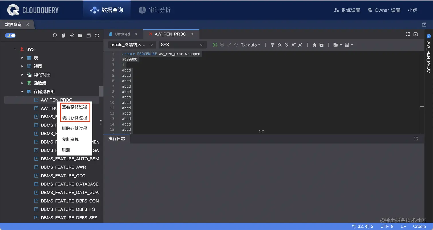 ② Oracle 支持创建、查看、调用存储过程。