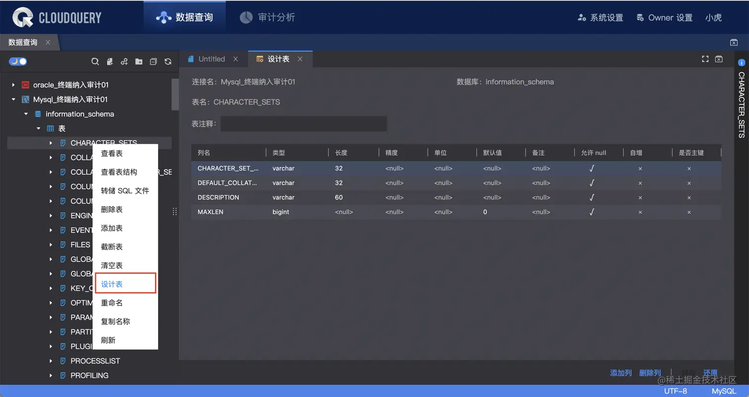 ① SQLServer、MySQL 新增「设计表」功能,现可调整表结构。