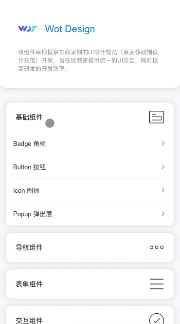 WotDesign 正式与大家见面啦!WotDesign 是聚焦前端团队基于京麦新规范实现的组件库,旨在给商家提供统一的UI交互,同时提高研发的开发效率。