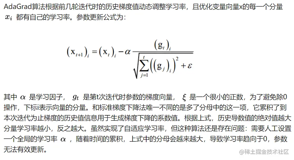 缺点:学习率单调递减,在迭代后期可能导致学习率变得特别小而导致收敛及其缓慢。同样的,我们还需要手动设置初始 α