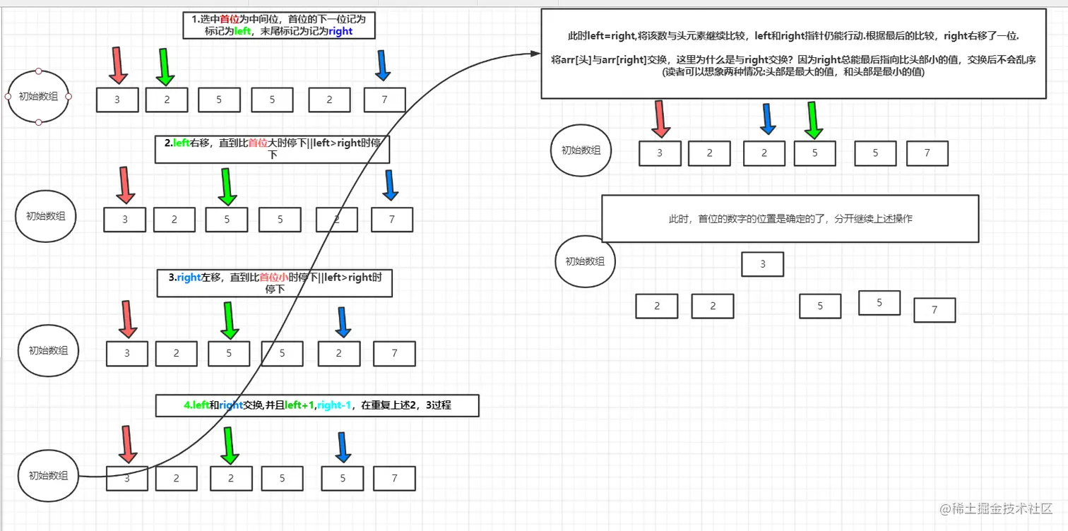 冒泡排序的一种改进,通过一趟排序将要排序的数据分割成独立的两部分,其中一部分的所有数据都比另外一部分的所有数据都要小