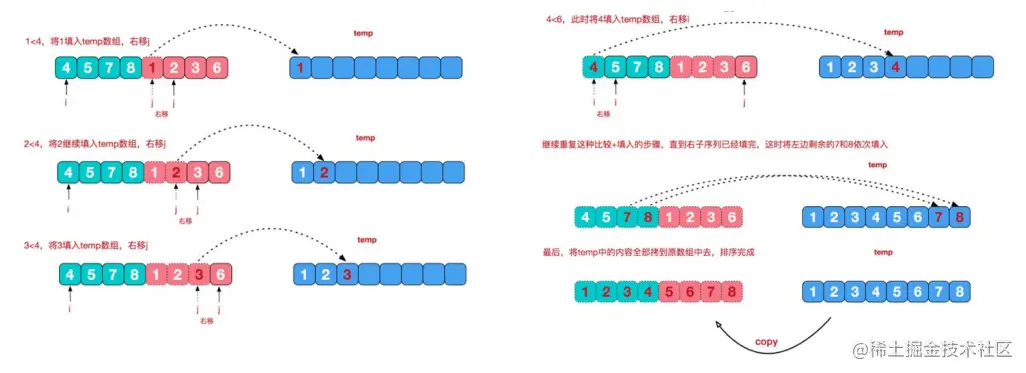 //到了这里后,temp就是一个已经在[left,right]范围内排好序的数组,赋值给arr,让其数组有序