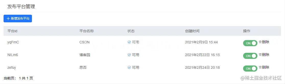 - 点击一键发布,会自动发布到当前用户下的所有平台