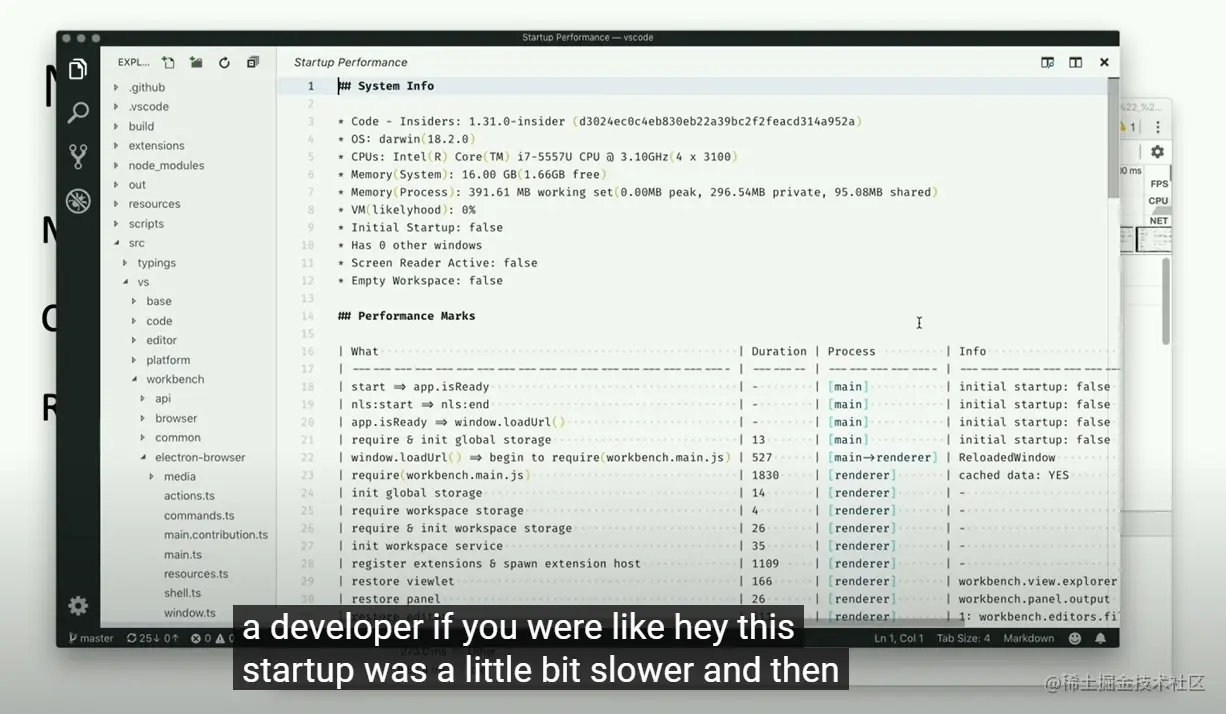 最近在做 electron 性能优化方面的工作,学习一下 vscode 在这方面的解决方案,在 youtube 上找到这个视频Visual Studio Code-The First Second,以下是视频对应的笔记。