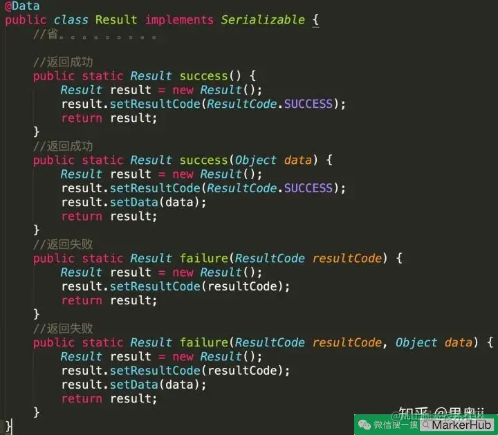 我们可以在 Result 类中,加入静态方法,一看就懂