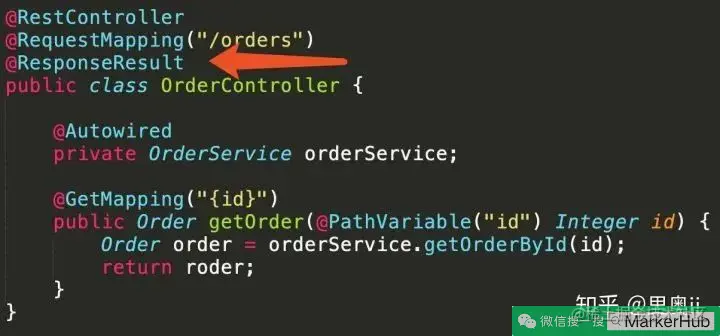 在控制器类上或者方法体上加上 @ResponseResult 注解,这样就 ok 了,简单吧。到此返回的设计思路完成,是不是又简洁,又优雅。