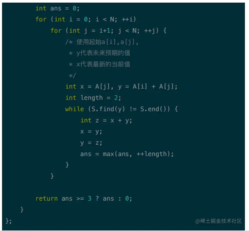 最长的斐波那契子序列的长度(暴力法)