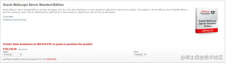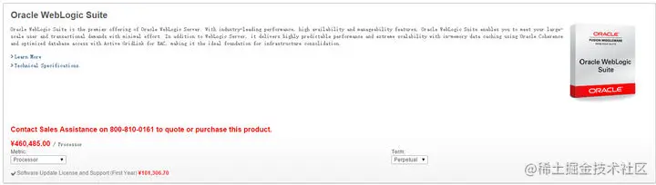 土豪钱多还可以上Weblogic套装,针对每个CPU的授权需要46万哦