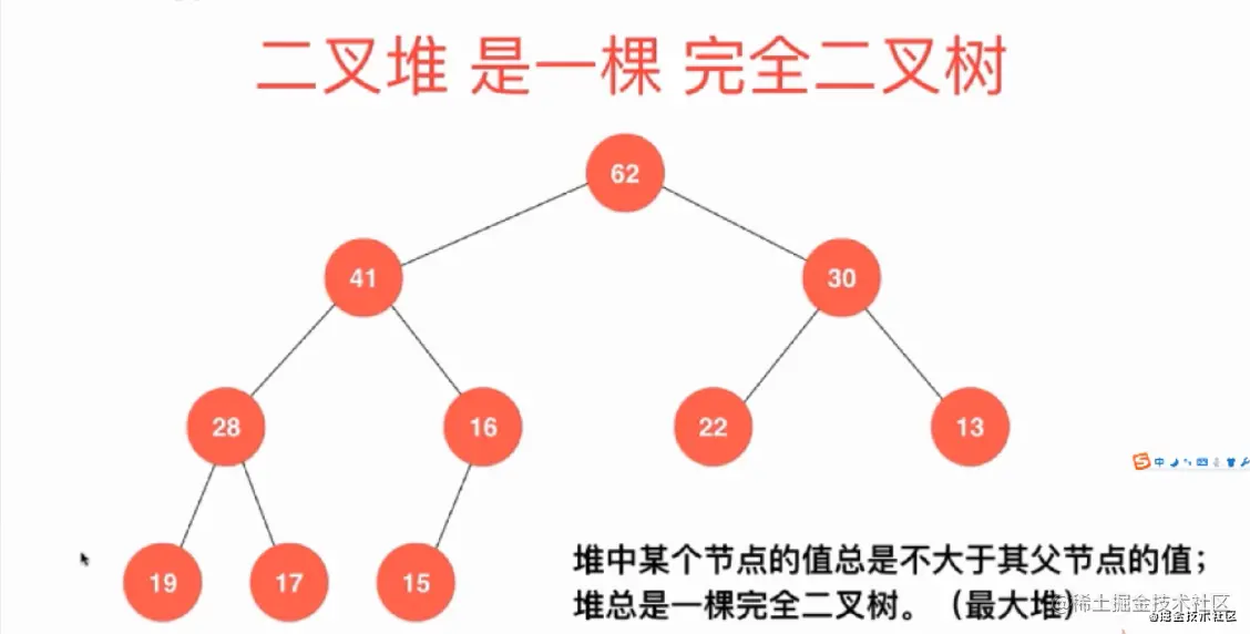 堆中某个节点的值,总是不大于父节点的值,这样的二叉树结构,叫做完全二叉树。