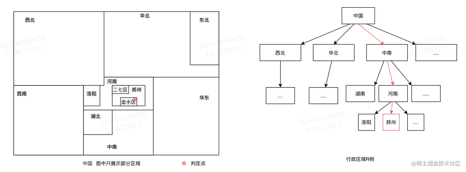 了解了什么是R树以及最小外包矩形的概念,那么我们如何基于R树进行行政区域查询的优化呢?