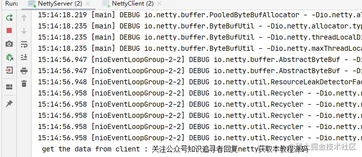 首先我们先启动 服务端和 客户端,知识追寻者 的代码有个应答 消息;