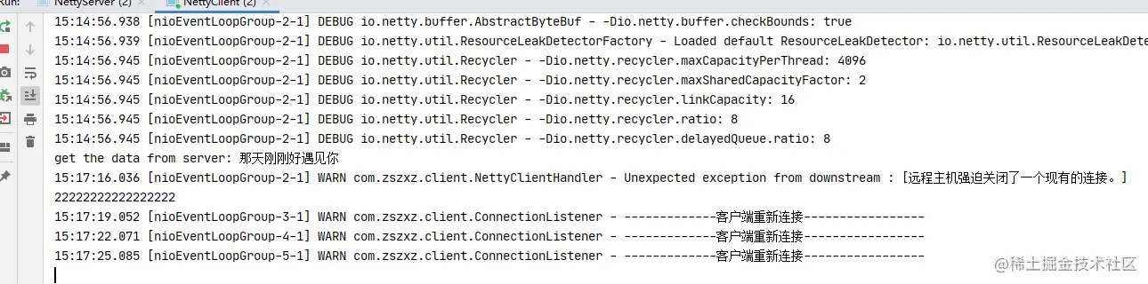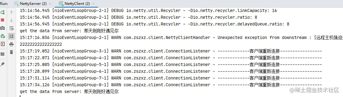 重新启动服务端,重连成功