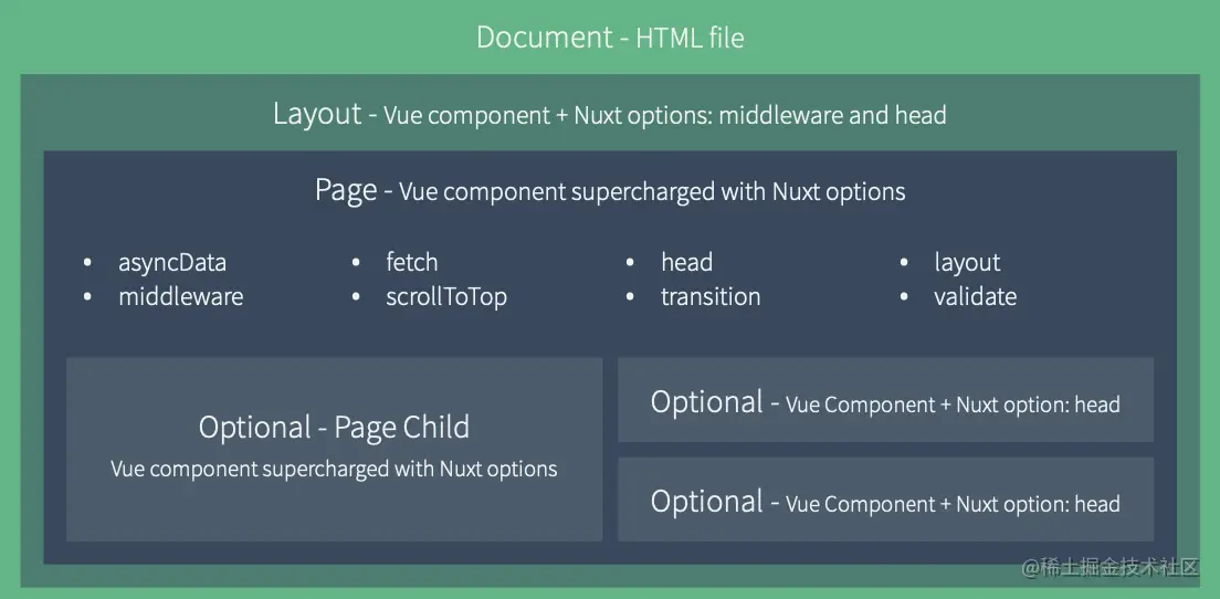 作为框架,Nuxt.js 为 客户端/服务端 这种典型的应用架构模式提供了许多有用的特性,例如异步数据 加载、中间件支持、布局支持等非常实用的功能。