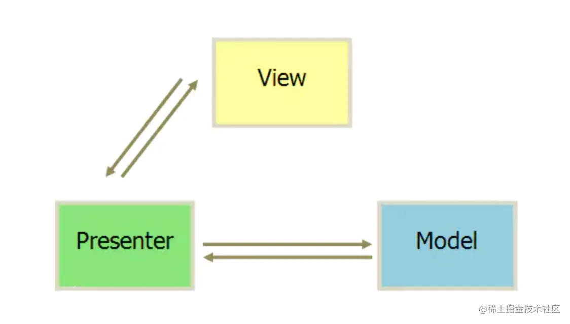 - 视图层接收到用户事件,将事件交给presenter处理,同时视图层暴露视图更新接口
