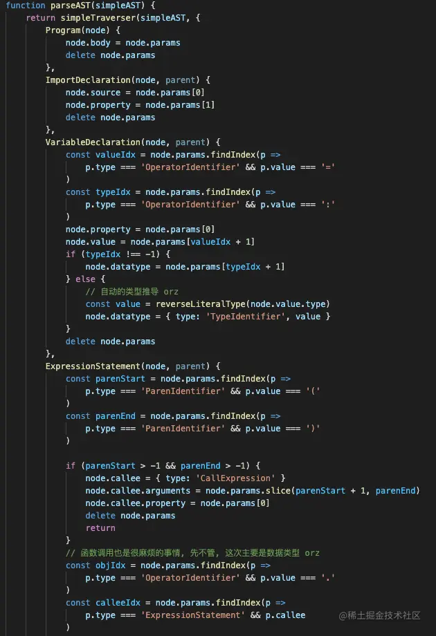 首先肯定是需要一个简易的 simpleAST 的遍历器, 尝试了一下, 使用后序遍历会好一些 = =