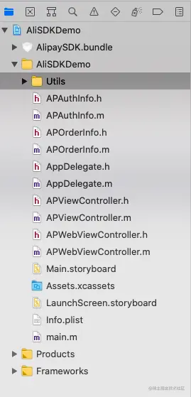 在需要调用 AlipaySDK 的文件中,增加头文件引用。