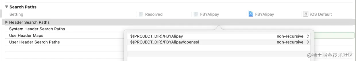 同时,在项目 Build Settings 中设置桥接文件的位置。
