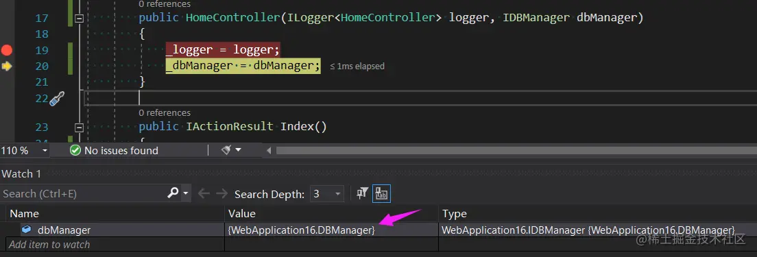 接下来就可以在 Controller 中通过依赖注入的方式获取 DBManager 实例啦,实现代码如下: