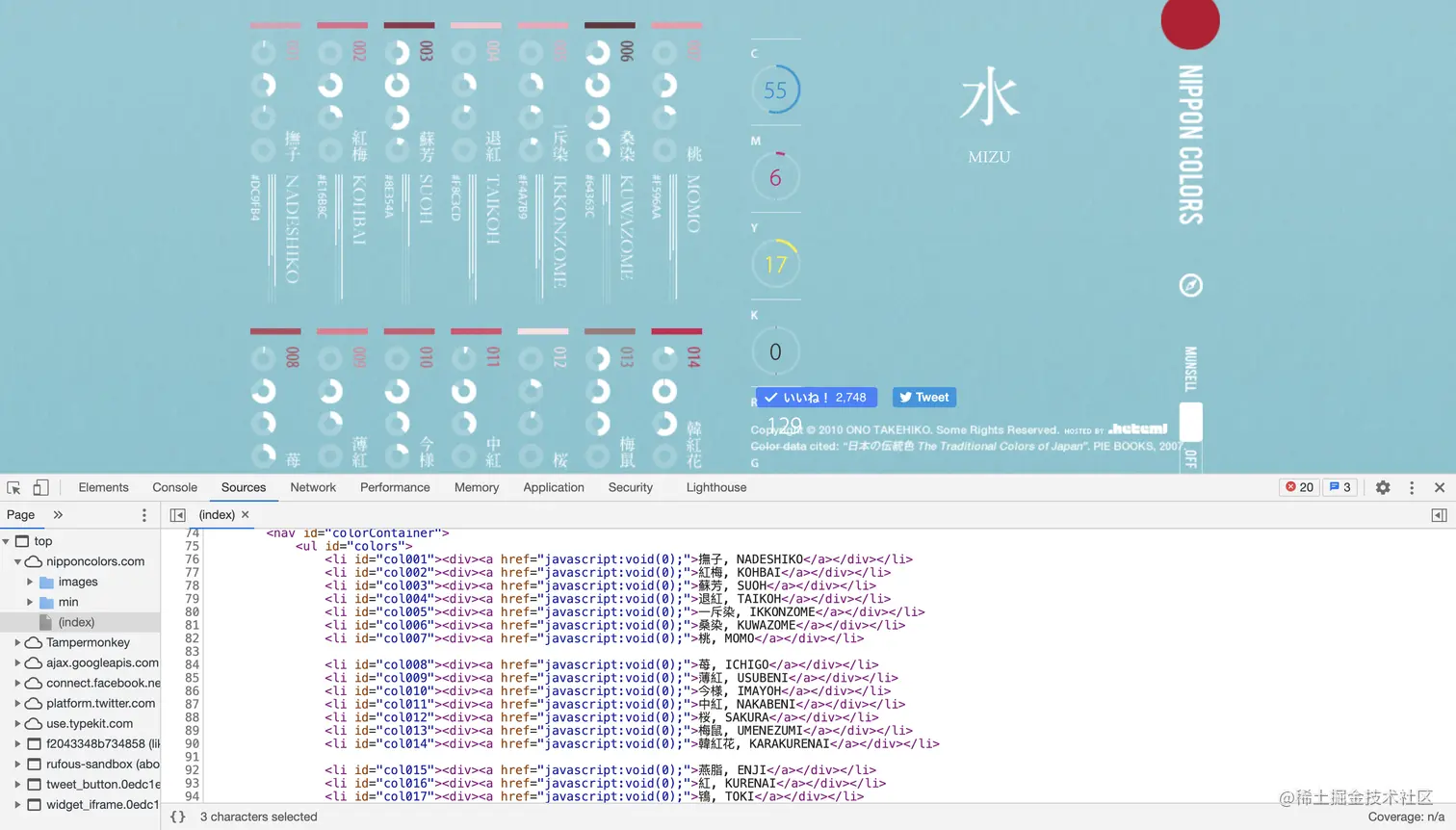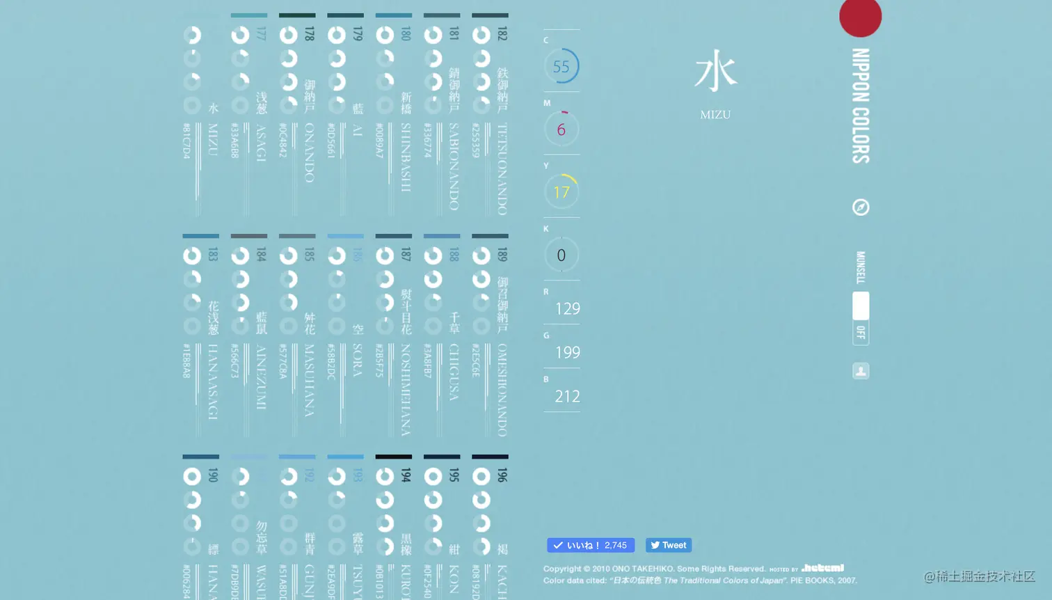 首先是日本传统颜色的可视化,数据一开始想用 Nippon Colors 这个网站的。