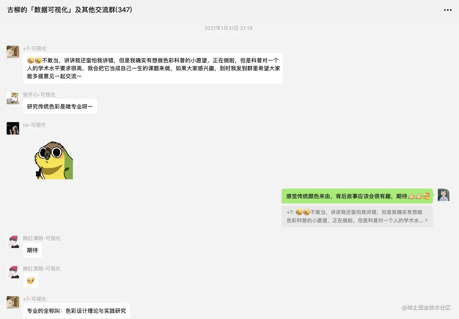 建交流群以来有过好几次印象深刻的时刻,后续有机会可以讲讲。本文已经扯了许多有的没的,关于口红颜色可视化、宝可梦数据可视化、春晚蚊香图/万花筒效果等等内容就留到后续文章里再讲吧。